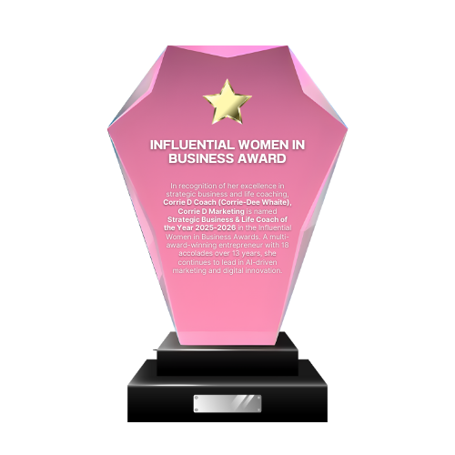 Corrie-Dee Whaite is a multi-award-winning entrepreneur and the powerhouse behind Corrie D Coach (Corrie-Dee Whaite). As the founder of Corrie D Marketing, with 18 prestigious accolades in the past 13 years, she has now been recognized as Strategic Business & Life Coach of the Year 2025-2026 at the Influential Women in Business Awards.