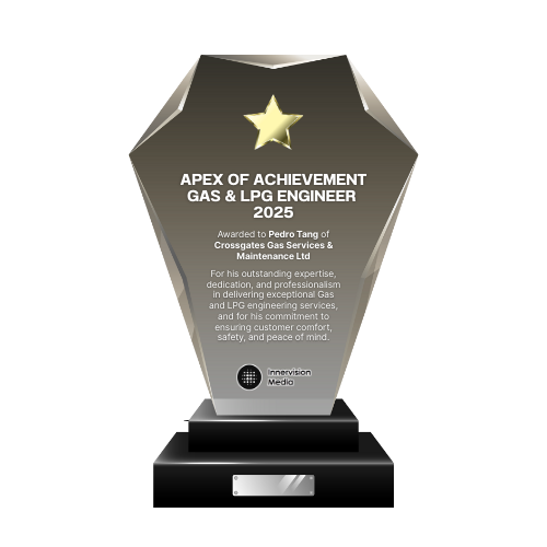 Crossgates Gas Services has been recognised with the Apex of Achievement Award for Gas & LPG Engineer 2025, a prestigious honour celebrating their outstanding service, technical expertise, and dedication to customer care across the gas, oil, and LPG sectors.