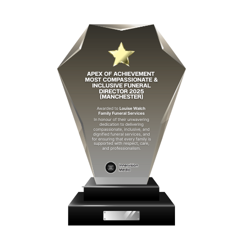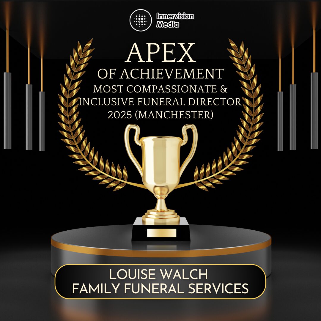 Louise Walch Family Funeral Services, a respected independent funeral home based in Droylsden, has been named Most Compassionate & Inclusive Funeral Director 2025 at the Apex of Achievement Awards. The accolade celebrates the firm’s outstanding dedication to serving families across Manchester with sensitivity, inclusivity, and the highest professional standards.