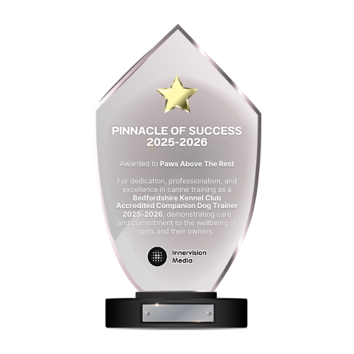Paws Above The Rest has been proudly recognised with the Pinnacle of Success Award 2025 to 2026, earning the title of Bedfordshire Kennel Club Accredited Companion Dog Trainer, celebrating its commitment to ethical, professional, and compassionate canine training.